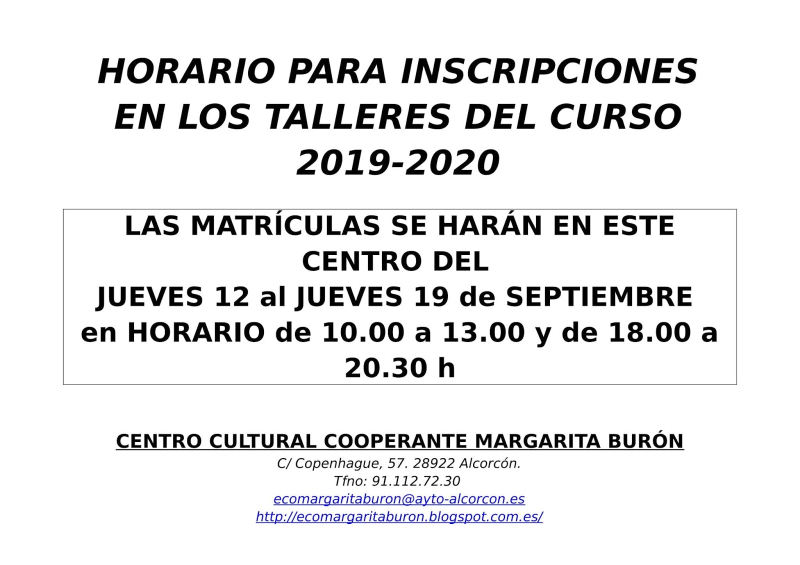 FECHA DE MATRICULACIONES EN LOS CURSOS 2019-2020